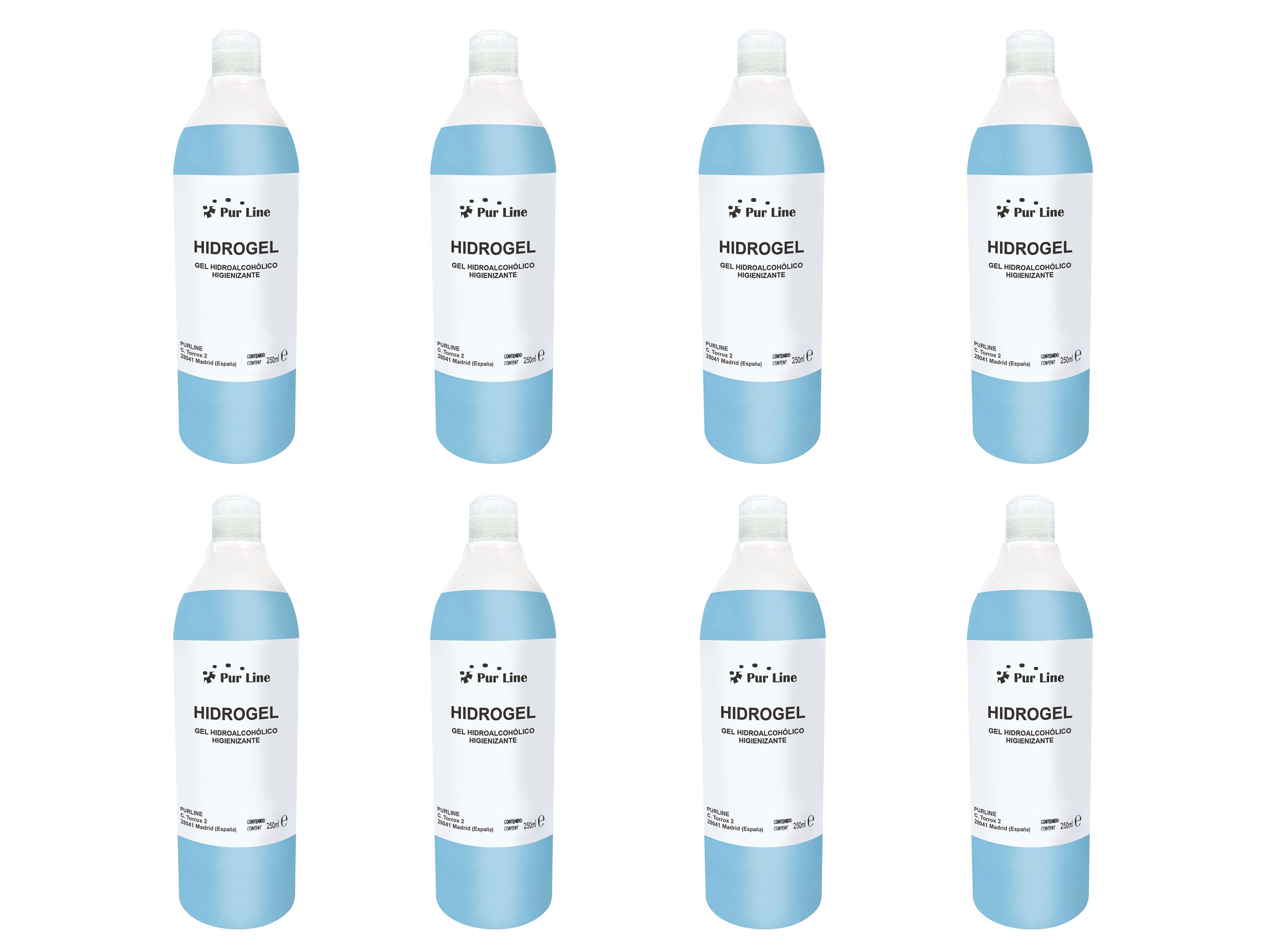 Gel hidroalcohólico higienizante. Pack de 8 botellas de 250ml