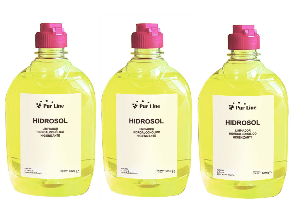 Limpiador hidroalcohólico higienizante multiusos. Pack de 3 botellas de 500ml