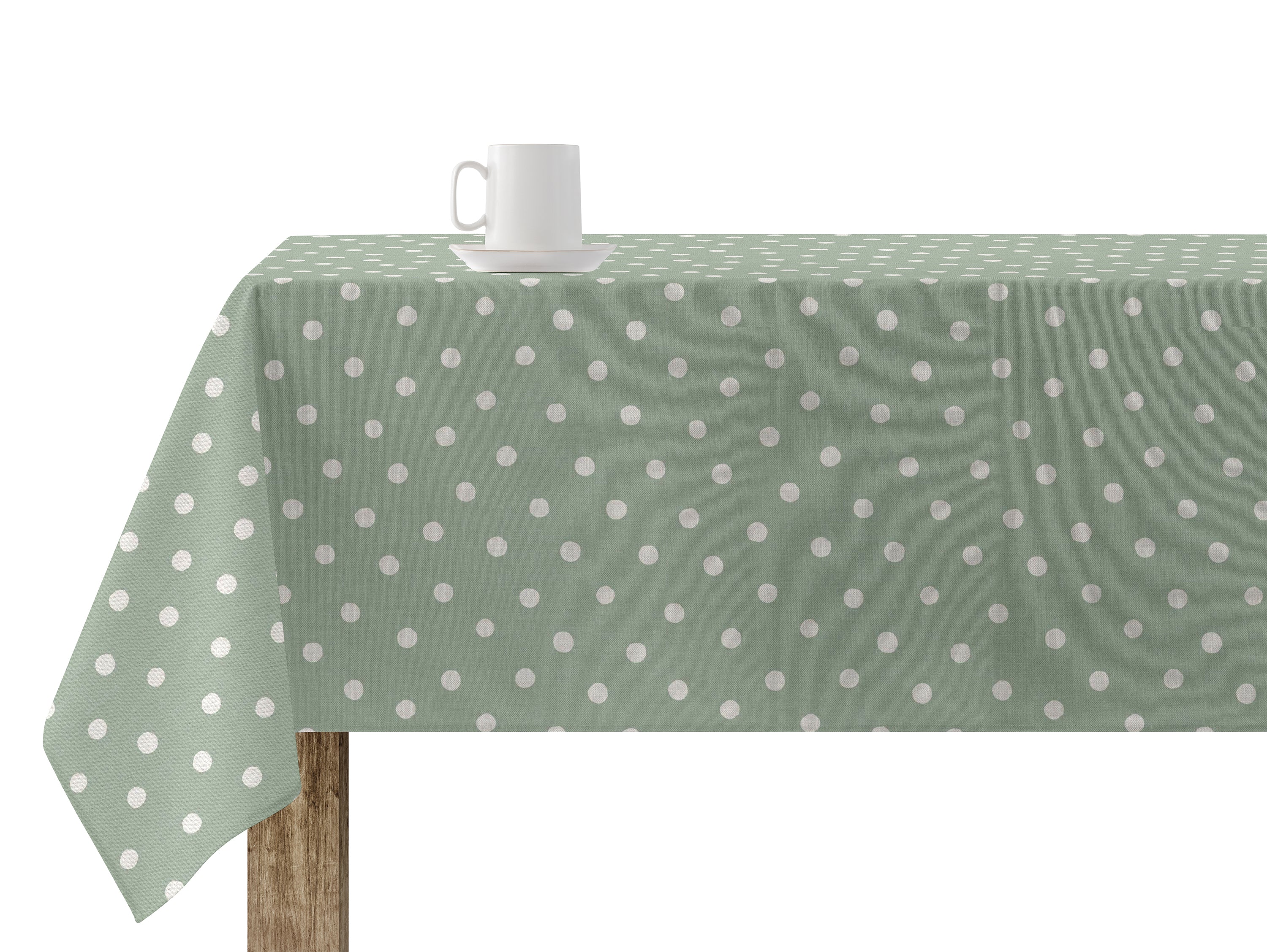 Mantel antimanchas 100% algodón 300x140 cm verde lunares blancos
