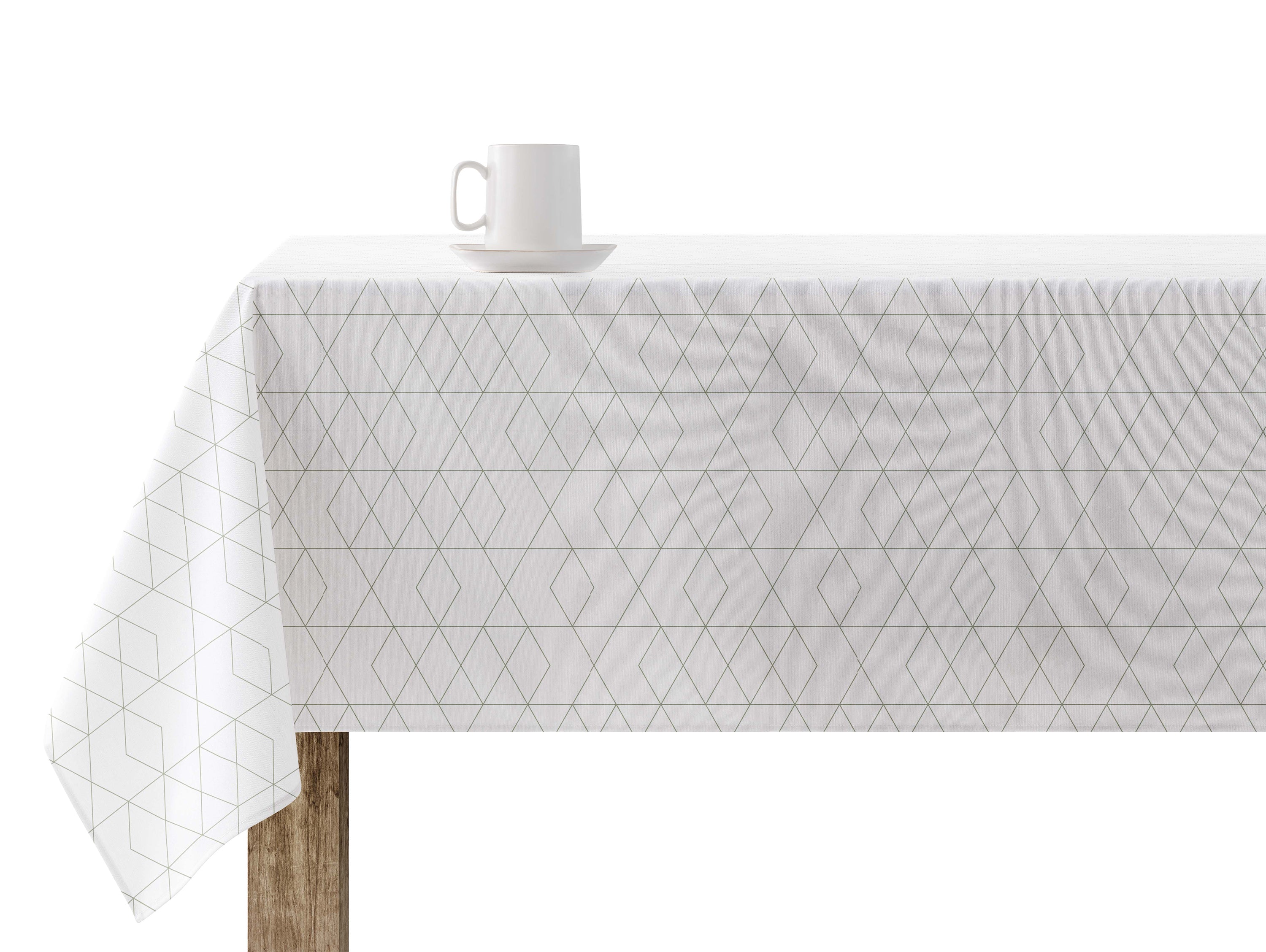 Mantel antimanchas 100% algodón puro, 100x140 cm, 1 pieza diseño geométrico en blanco con líneas verdes
