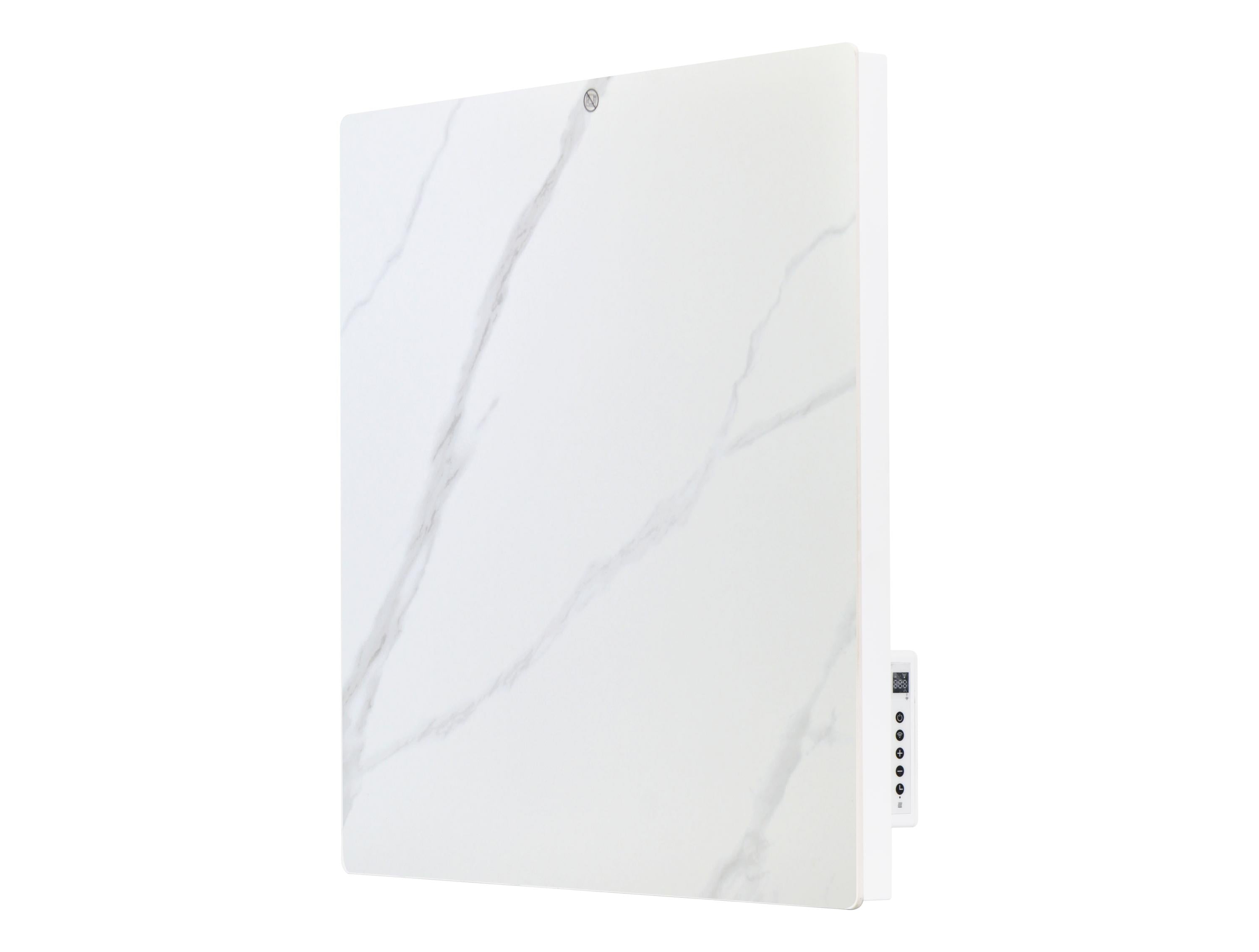 Emisor térmico con panel frontal fabricado en piedra sinterizada imitación mármol. Emisión de calor por convección y radiacción. Inercia térmica gracias a la placa cerámica frontal que acumula calor. Elemento calefactor de Nano Carbono.IP24. Control Wifi