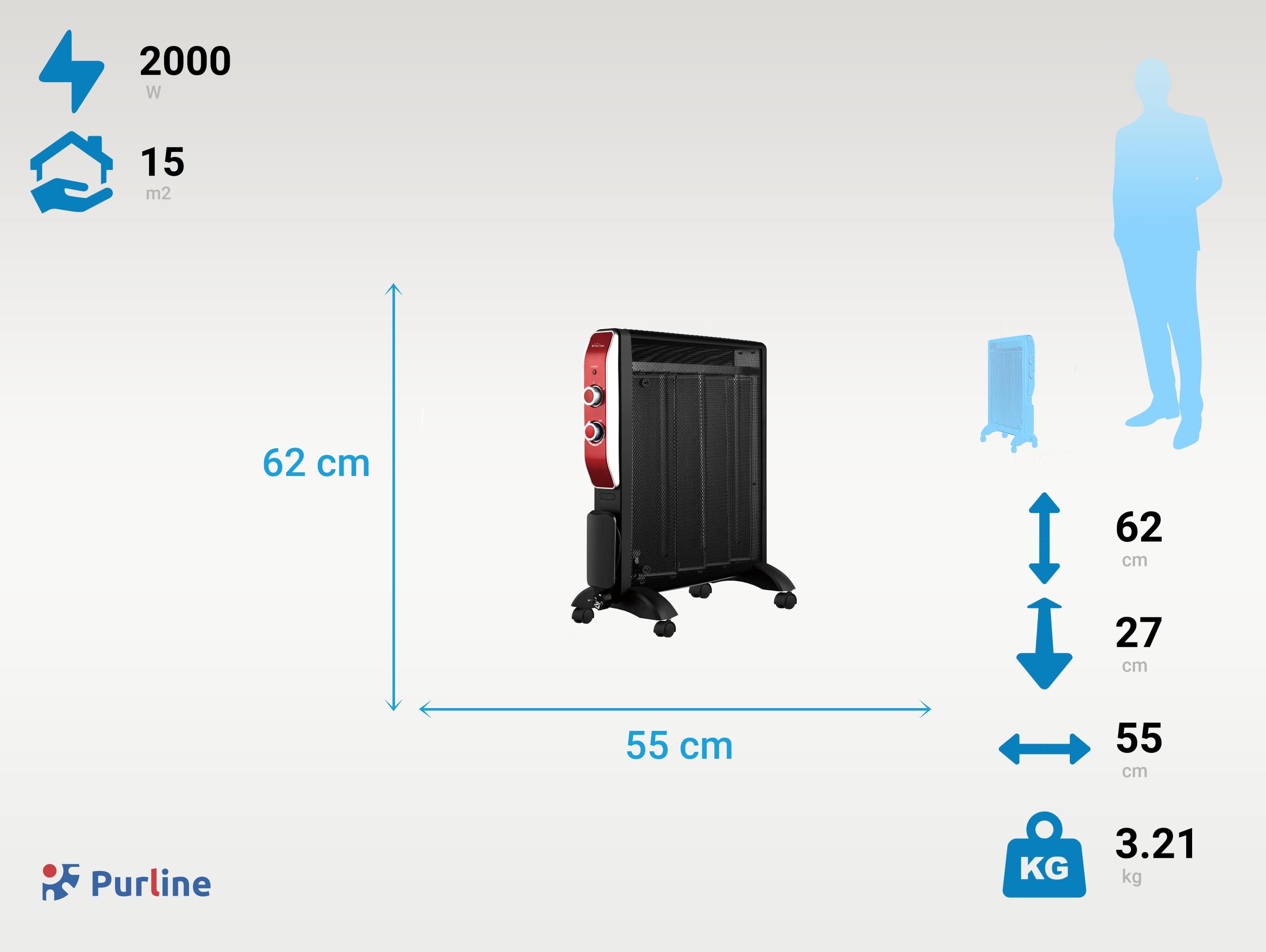 Este radiador ofrece varias ventajas. En primer lugar, es de bajo consumo, lo que te permite ahorrar en tu factura de electricidad. Además, cuenta con una difusión óptima del calor gracias a los paneles de mica y la rejilla superior. También dispone de ruedas, lo que te permite desplazarlo fácilmente según tus necesidades. Por último, su diseño en negro con detalles en rojo lo hace atractivo y favorece la decoración de tu hogar.