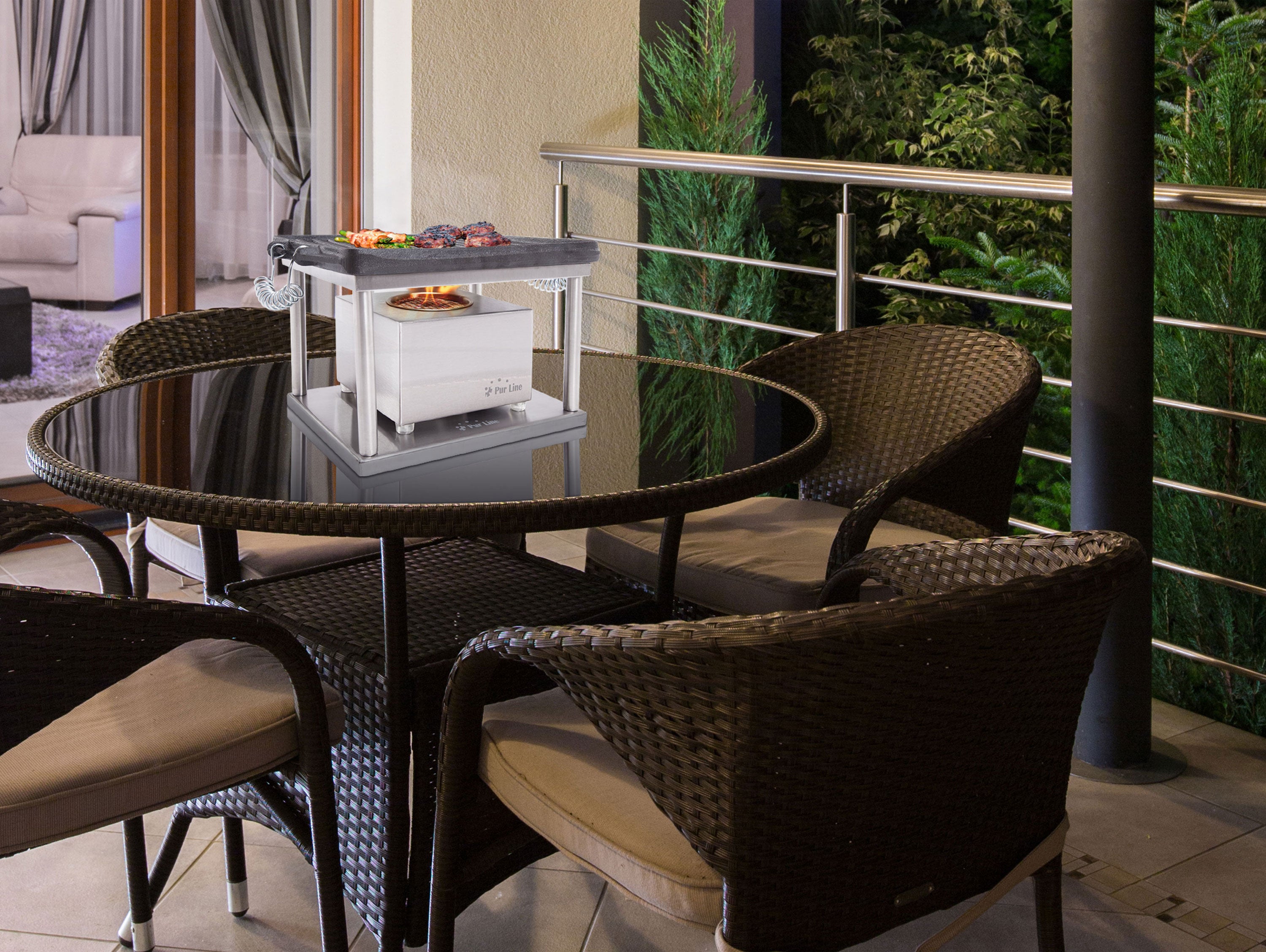 Sus medidas (LxPxH: 27x21x19) y su peso (4kg) convierten este exclusivo accesorio en la forma más cómoda de transformar tu biochimenea decorativa en una barbacoa que funciona con biocombustible natural.
