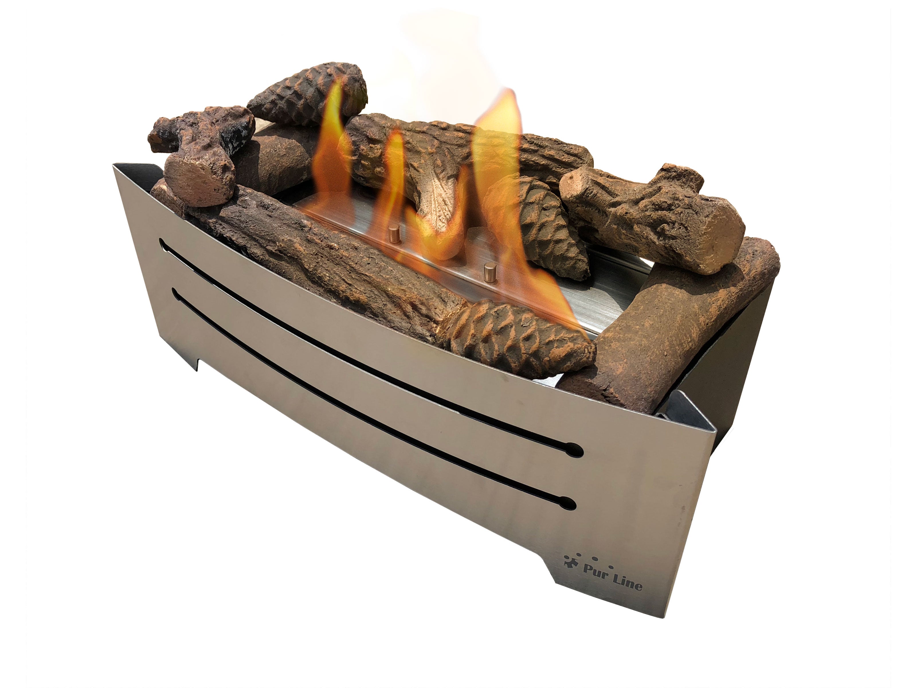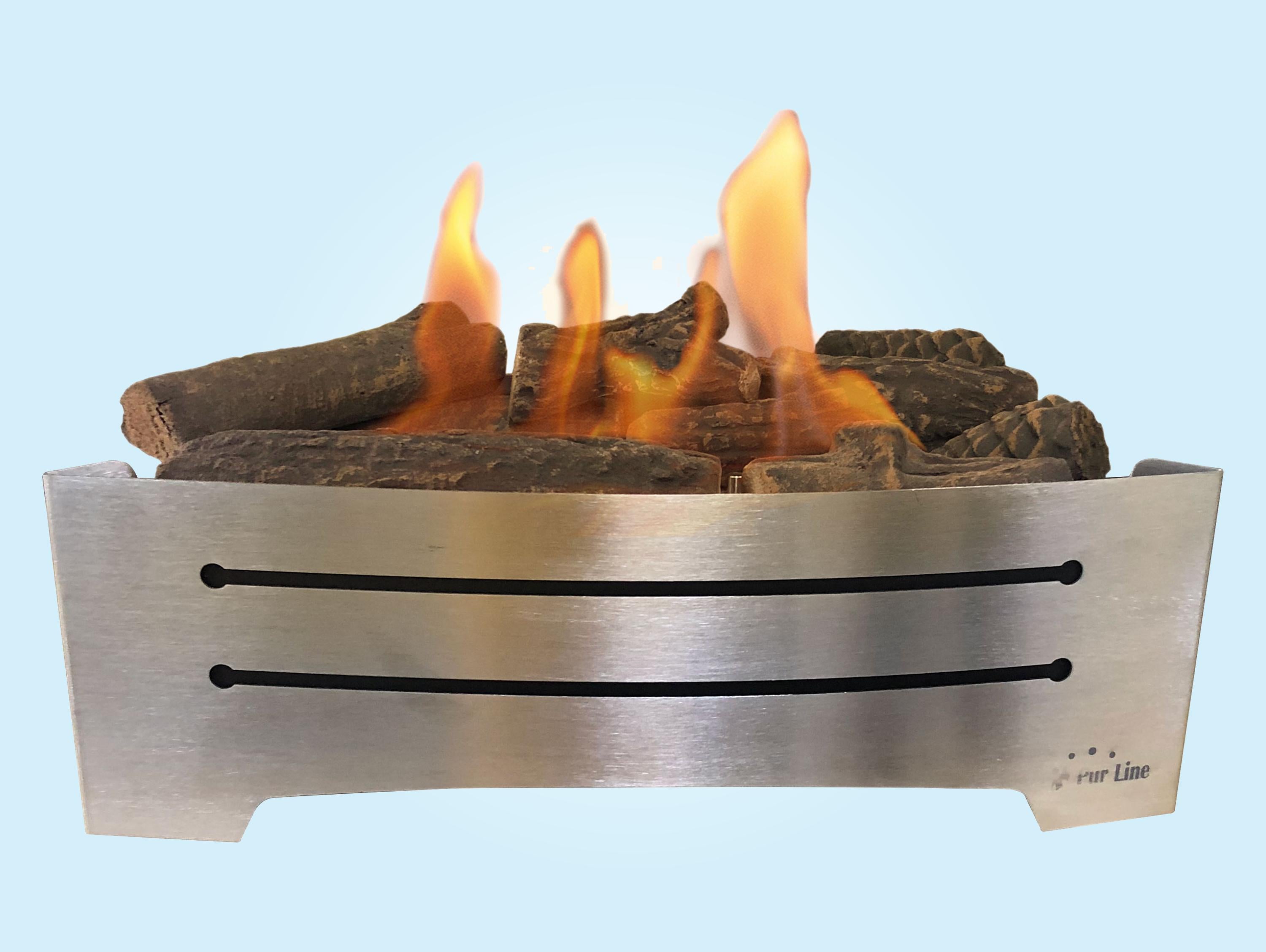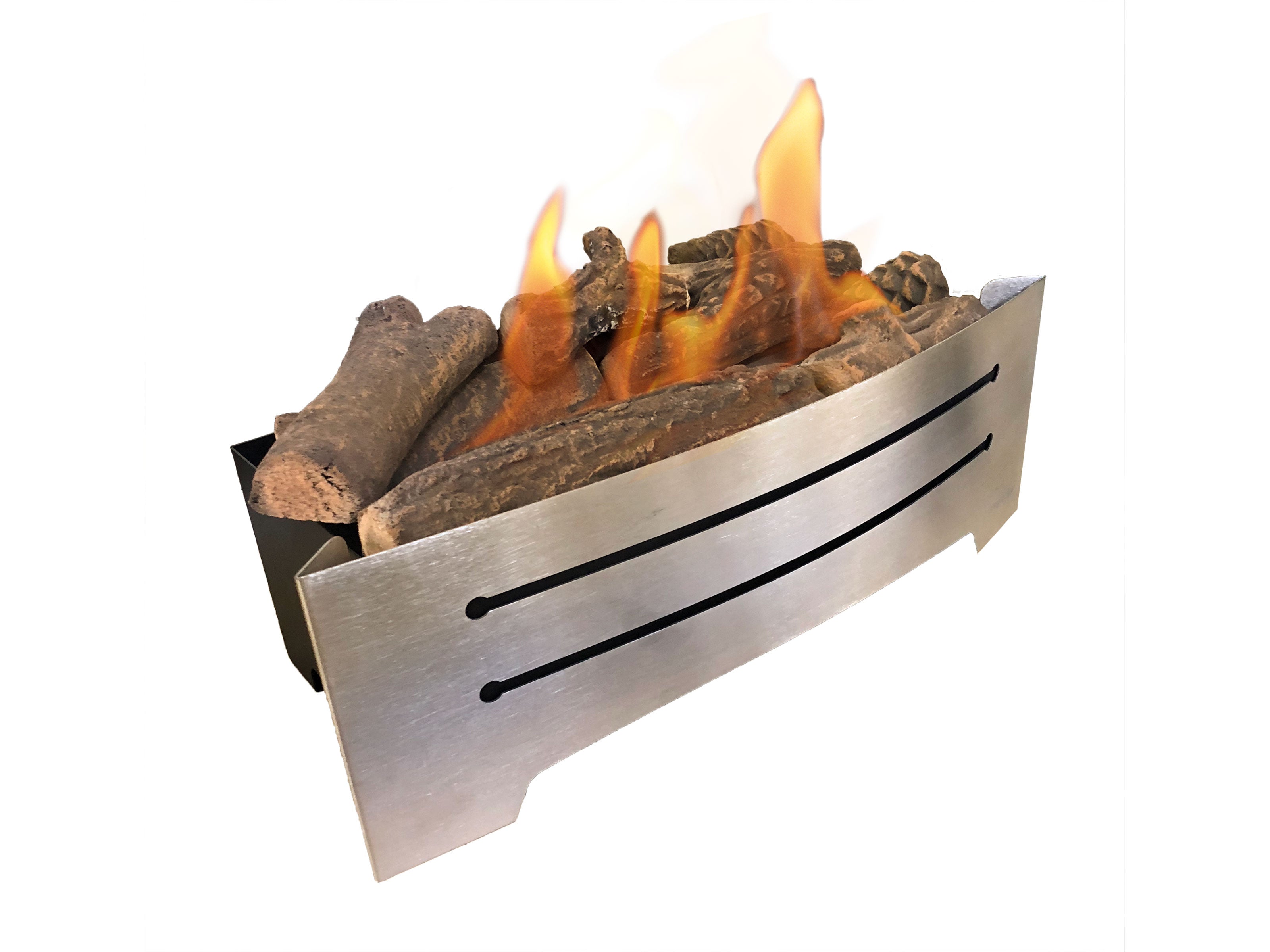 Quemador con bloque de combustión 1,5 L con frontal en acero inox y leños cerámicos