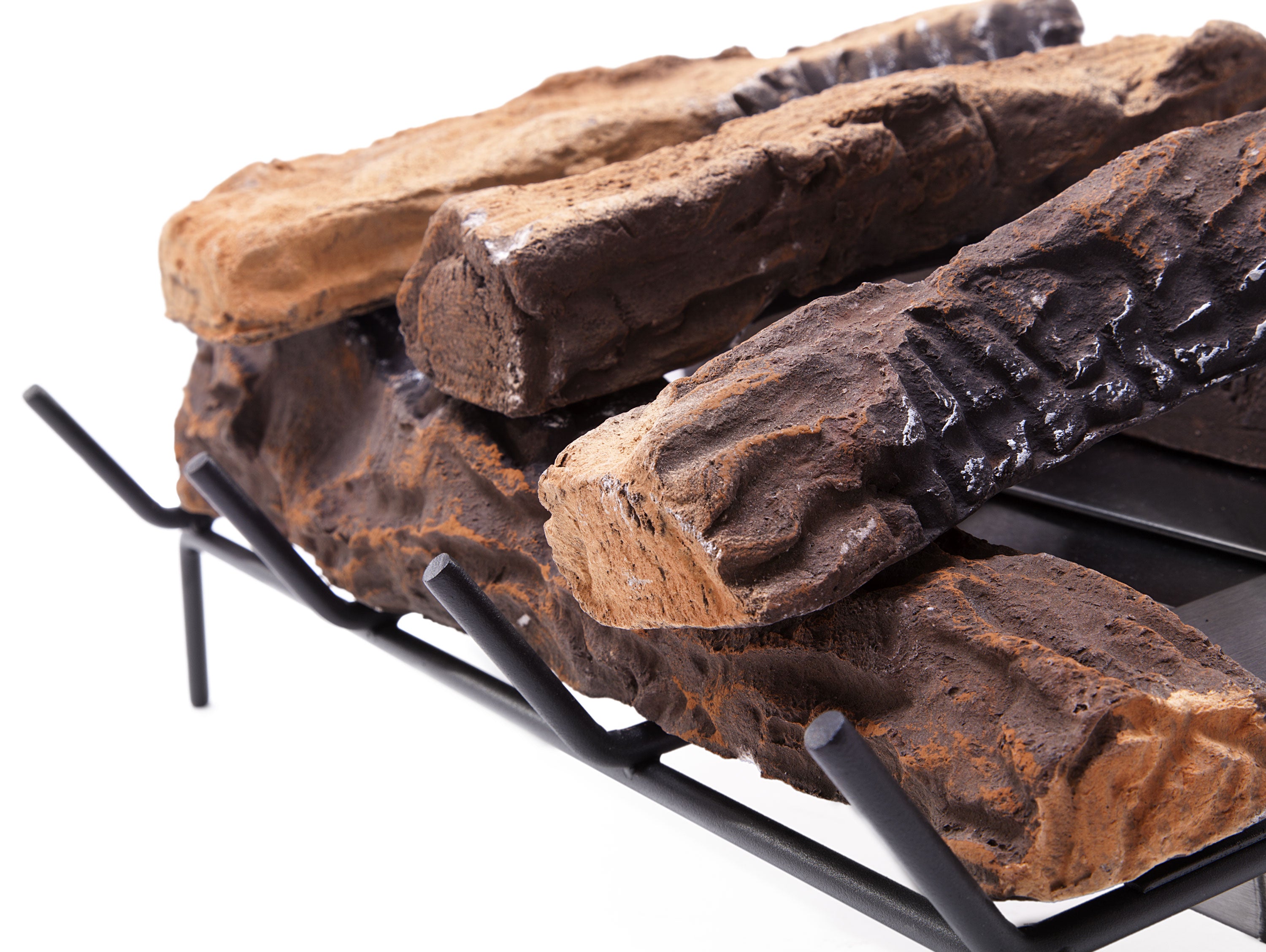 Sí, el bloque de combustión viene con unos leños decorativos cerámicos de color marrón, que simulan el efecto de la leña consumiéndose en la hoguera. Esto añade un toque estético y realista a tu chimenea.