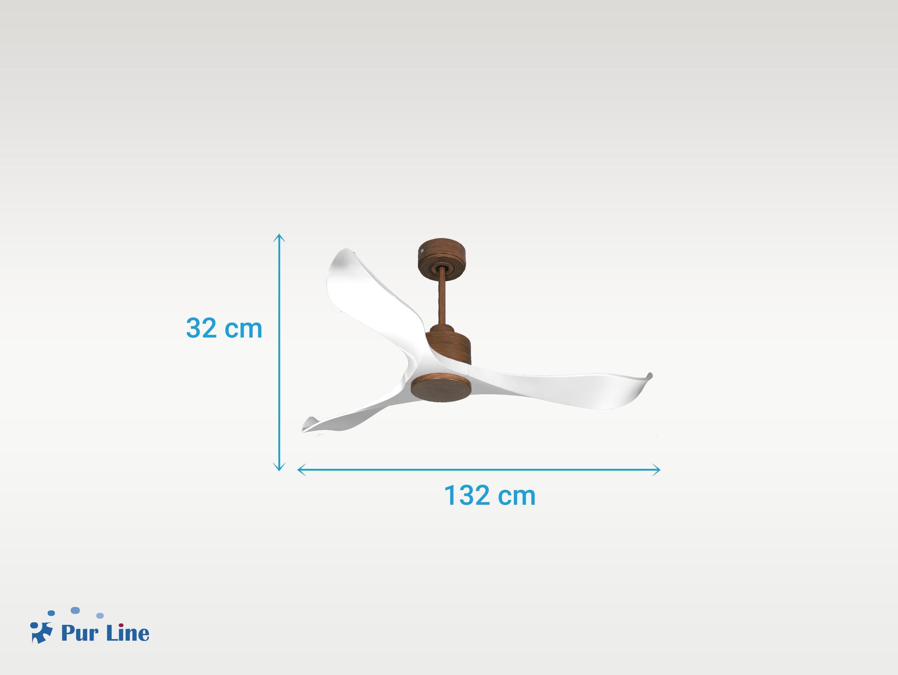 El motor de corriente continua (DC) Klassfan by Purline, es un motor de alta calidad con unas prestaciones de alto nivel. Permite instalaciones en techos de hasta 15º de inclinación y se sirve con dos tijas para que se instale a la altura adecuada (13.5 cm y 25 cm). Permite 2 o 3 aspas (dependiendo del modelo de aspa), pues dispone de una función de auto equilibrado. Todos los motores permite incluir un kit de luz.Es un motor con función Verano/Invierno (Desestratificador de aire), de forma que en invierno podrás invertir el movimiento del motor, para que su giro desplace el aire caliente hacia abajo, actuando como complemento de tu sistema de calefacción y favoreciendo un consumo optimizado con un importante ahorro energético. Además incluye un termostato en su base superior, que te permite programar el ventilador para funcione según la temperatura ambiente.Una ventaja muy destacada, es su sistema FullFlow patentado, que permite calibrar el consumo y la potencia del motor, a las necesidades de las palas elegidas, logrando unos resultados espectaculares en rendimiento energético. Nuestro sistema Fullflow permite una verdadera versatibilidad.Ademas cuenta con multitud de ventajas adicionales como 6 velocidades programables (fullflow), temporizador (8h) y posibilidad de control remoto mediante mando a distancia, mando de pared y conexión WiFi con la aplicación Tuya Smart, para poder utilizar el ventilador desde cualquier dispositivo móvil. Cuenta también con sistema certificado Hypersilence, una tecnología súper silenciosa a velocidad 3 y que permite utilizar el ventilador por las noches o en momentos de descansos, ofreciendo un rendimiento muy silencioso y con un consumo muy reducido, pudiendo llegar de 3 a 5 W, con aspas de 106 cm.También dispone de una función de memoria que guarda la configuración utilizada, tanto de velocidad como de luz, si así está equipado, de forma que cuando se apaga el ventilador se guarda y cuando se vuelve a encender arranca con la misma configuración. Las palas aerodinámicas de ABS otorgan al ventilador una gran ligereza. Han sido artesanalmente tratadas para estar equilibradas y no producir ningún tipo de vibración. Este modelo de 3 aspas en color blanco tiene un diámetro de 132 cm y alcanza hasta 187 RPM.